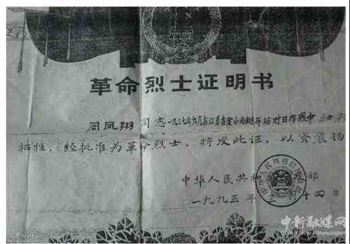 周叔川的侄孫周鳳翔,1901年生,黃埔軍校六期畢業(yè)生,國(guó)民革命軍53師317團(tuán)少校團(tuán)附二營(yíng)營(yíng)長(zhǎng)。1937年率所部將士500余人與日軍血戰(zhàn)淞滬戰(zhàn)場(chǎng),9月在小南翔車站作戰(zhàn)中犧牲,所部將士無(wú)一生還,全部壯烈殉國(guó)。1995年,中華人民共和國(guó)民政部為周鳳翔頒發(fā)了革命烈士證明書。