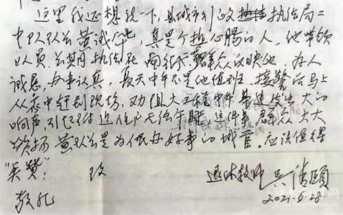 “縣城管執(zhí)法局中隊長黃誠華,真是個熱心腸的人,他帶領(lǐng)隊員長期執(zhí)法在南街,群眾反映他,為人誠懇、辦事認(rèn)真……”這是前不久黃山市休寧縣南街群眾吳阿姨寫的一封感謝信。