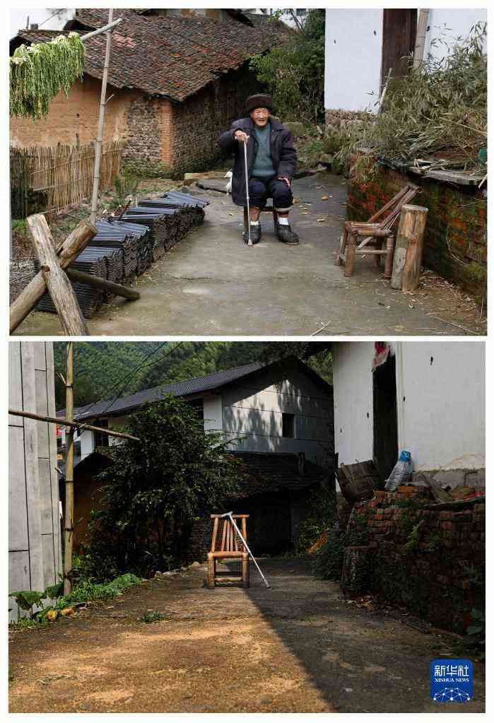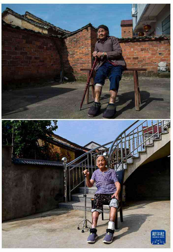拼版照片:上圖為2015年4月15日,應(yīng)彩琴在金華市婺城區(qū)蔣堂鎮(zhèn)澤口村家中(新華社記者韓傳號(hào)攝);下圖為2021年9月3日,應(yīng)彩琴在澤口村的家中留影(胡肖飛 攝)。