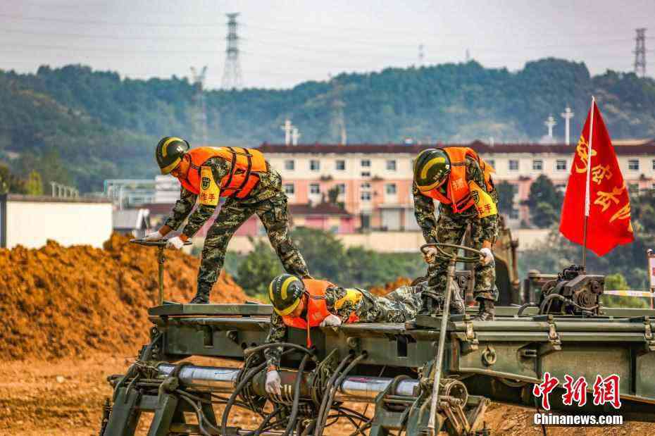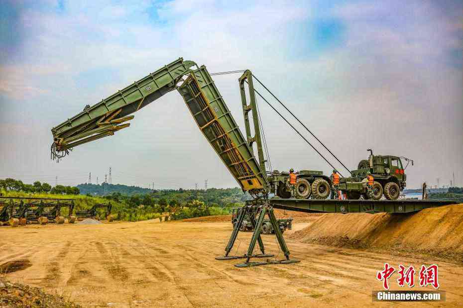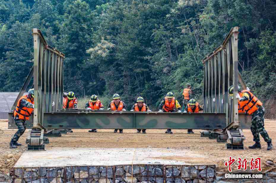 官兵同心協(xié)力架設(shè)鋼橋。余凱 攝