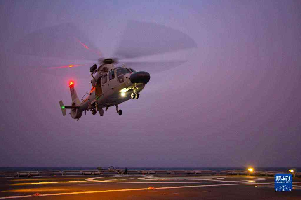 中國海軍第38批護航編隊南京艦在亞丁灣某海域組織艦載直升機跨晝夜飛行訓(xùn)練(6月16日攝)。新華社發(fā)(王宗洋 攝)