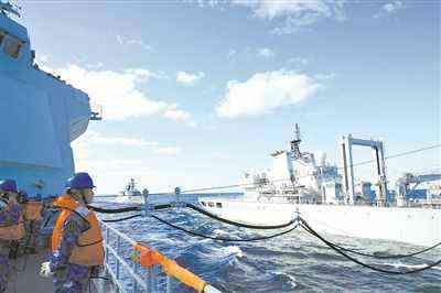 參演艦艇進(jìn)行海上補(bǔ)給。