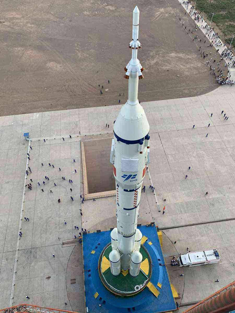 6月9日,神舟十二號(hào)載人飛船與長(zhǎng)征二號(hào)F遙十二運(yùn)載火箭組合體已轉(zhuǎn)運(yùn)至發(fā)射區(qū)。攝影:汪江波