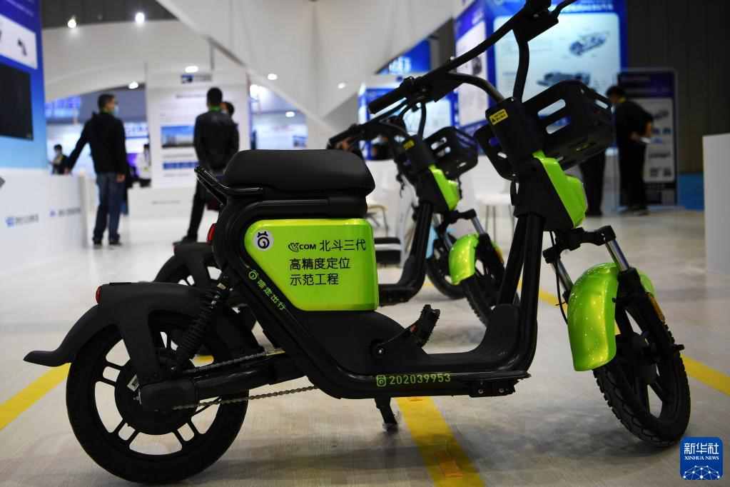 這是10月10日在北斗融合應(yīng)用成果博覽會(huì)上拍攝的一款裝有北斗定位裝置的電動(dòng)車。