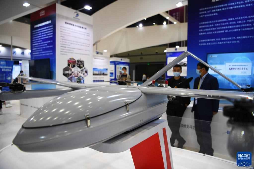 這是10月10日在北斗融合應(yīng)用成果博覽會(huì)上拍攝的一款垂直起降固定翼無人機(jī)。