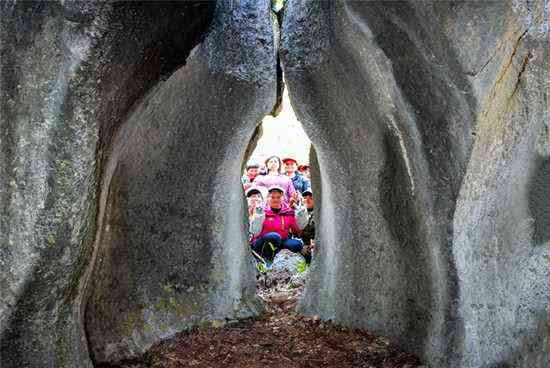 近日,該村自發(fā)出動村民60多名上山,在石林中筑路清除障礙,為游客展示獨特的鄉(xiāng)村石林旅游生態(tài)環(huán)境與風(fēng)景,讓絢麗多姿的茶田鄉(xiāng)村石林景觀,盡快走向全省乃至全國的旅游市場。圖二為村民在觀賞神奇的“迷宮石”。