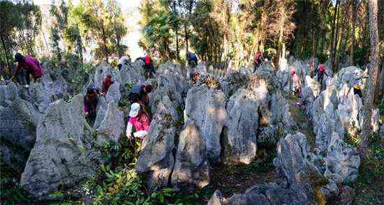 中國新報訊 (特約記者 彭林海 通訊員 鄭國華 鄭新娟 攝影報道)1月14日,湖南新寧萬塘鄉(xiāng)茶田村,村民正爬在成片的石林中清除騰蔓與樹枝雜草。該村共有石林山林面積3000多畝,其中已被發(fā)現(xiàn)、正在開發(fā)和開放的鄉(xiāng)村旅游石林已達300畝,去年,浙江橫店影視制作集團在這里拍攝了“西游記”而引起了轟動效應(yīng),吸引省內(nèi)游客絡(luò)繹不絕。