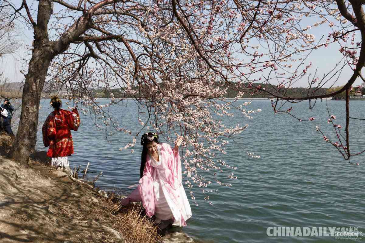 3月16日,頤和園西堤上盛開的桃花,吸引市民拍照留念。(中國(guó)日?qǐng)?bào)記者 姜東 攝)