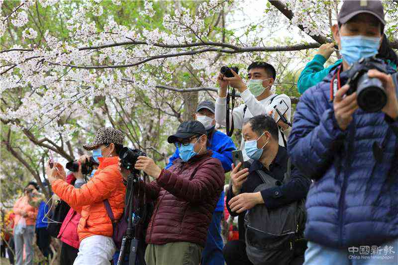2021年4月1日,攝影愛好者在北京玉淵潭公園拍攝櫻花。(中國日報記者 朱興鑫 攝)