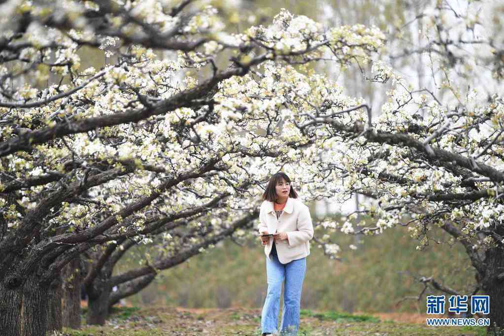 4月5日,游客在雄安新區(qū)雄縣雄州鎮(zhèn)馬蹄灣村梨園觀賞游玩。近日,河北省雄安新區(qū)雄縣雄州鎮(zhèn)1.8萬余畝梨樹陸續(xù)開花,吸引眾多游客前來踏青賞花。新華社記者 朱旭東 攝