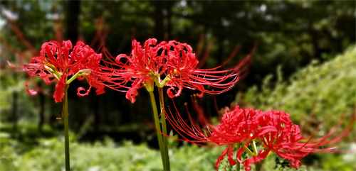 據(jù)了解,彼岸花因先開(kāi)花后長(zhǎng)葉,花和葉子永不見(jiàn)面而讓人稱(chēng)奇,又名“曼珠沙華”,多自然分布于溪畔、路旁及園邊、地角等處,往往密集叢生,滿(mǎn)枝燦爛,花期遠(yuǎn)長(zhǎng)于普通的花,有極強(qiáng)的生命力。(盛紅兵)