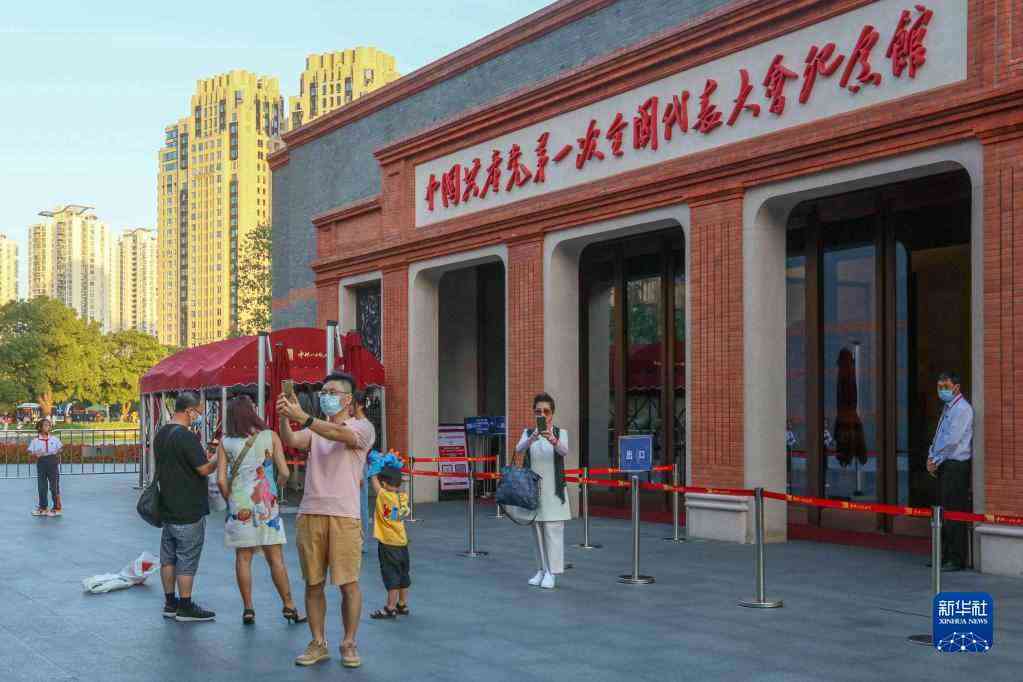 10月3日,參觀者在中共一大紀(jì)念館前拍照留影。