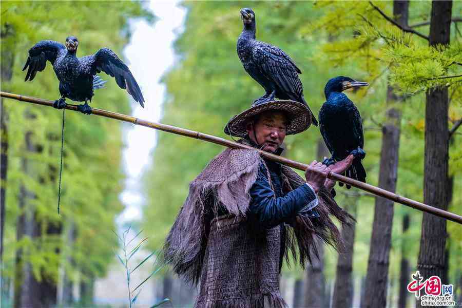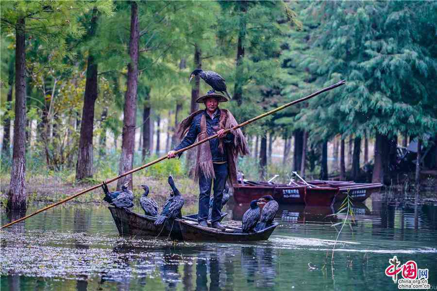 一位“鸕鶿指揮官”站在木筏子上,與他的“士兵”完美配合,表演著高難度動作的“雜技”,鸕鶿在他頭頂穩(wěn)穩(wěn)站立,在竹竿上展翅欲飛,引得游客攝影師們爭相拍照。鸕鶿捕魚是這里瀕臨失傳的古老技藝,漁家人,養(yǎng)一群天生的捕魚高手,用鸕鶿漁獲。