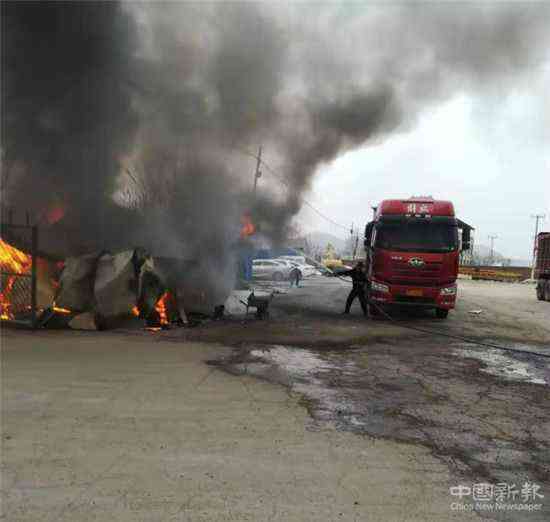 一位在現(xiàn)場(chǎng)的村民指著韓園樂說,如果沒有他們幫助救火和撥打消防隊(duì)電話,這大火隨時(shí)都可能引起旁邊貨車油箱及廠內(nèi)存放的電瓶、柴油的爆炸,后果不堪設(shè)想。