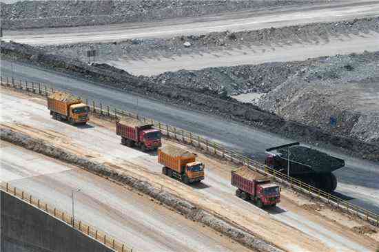 卡車在內蒙古鄂爾多斯市準格爾旗黑岱溝露天煤礦內作業(yè)(5月26日攝)。 新華社記者 貝赫 攝
