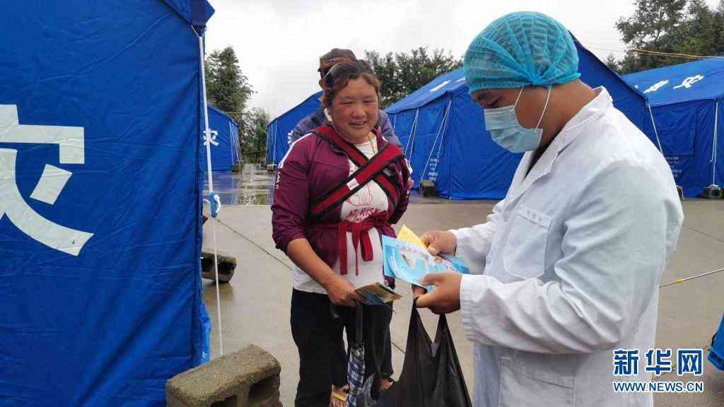 6月13日,在盈江縣卡場(chǎng)鎮(zhèn)卡場(chǎng)村委會(huì)咱巴石村村民小組地震救災(zāi)安置點(diǎn),工作人員向村民宣傳傳染病防控知識(shí)。