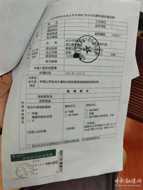 為了保障公民、法人和其他組織依法獲取政府信息,提高政府工作的透明度,建設(shè)法治政府,國務院頒布了政府信息公開條例。今年4月份,長沙芙蓉區(qū)的東成大廈以郵寄的方式向長沙市住房和城鄉(xiāng)建設(shè)局申請政府公開“東成大廈物業(yè)服務管理用房備案信息材料”,可是卻遲遲沒有得到答復。