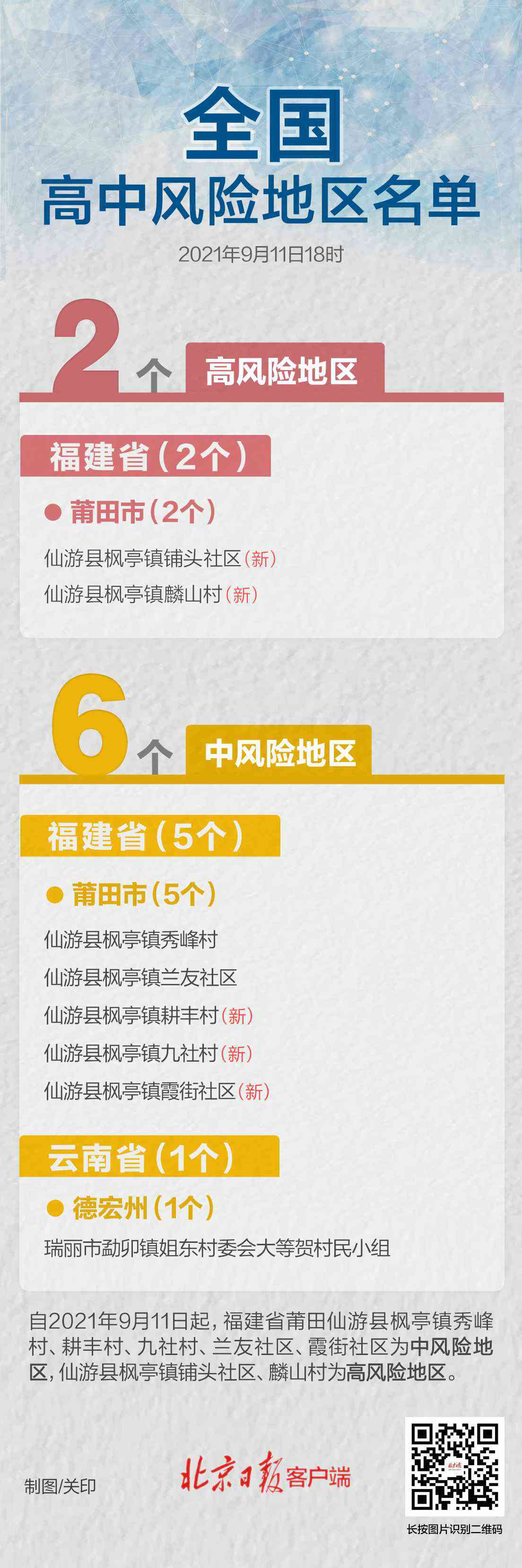 福建莆田多地升級!全國現(xiàn)有2+6個高中風險區(qū)