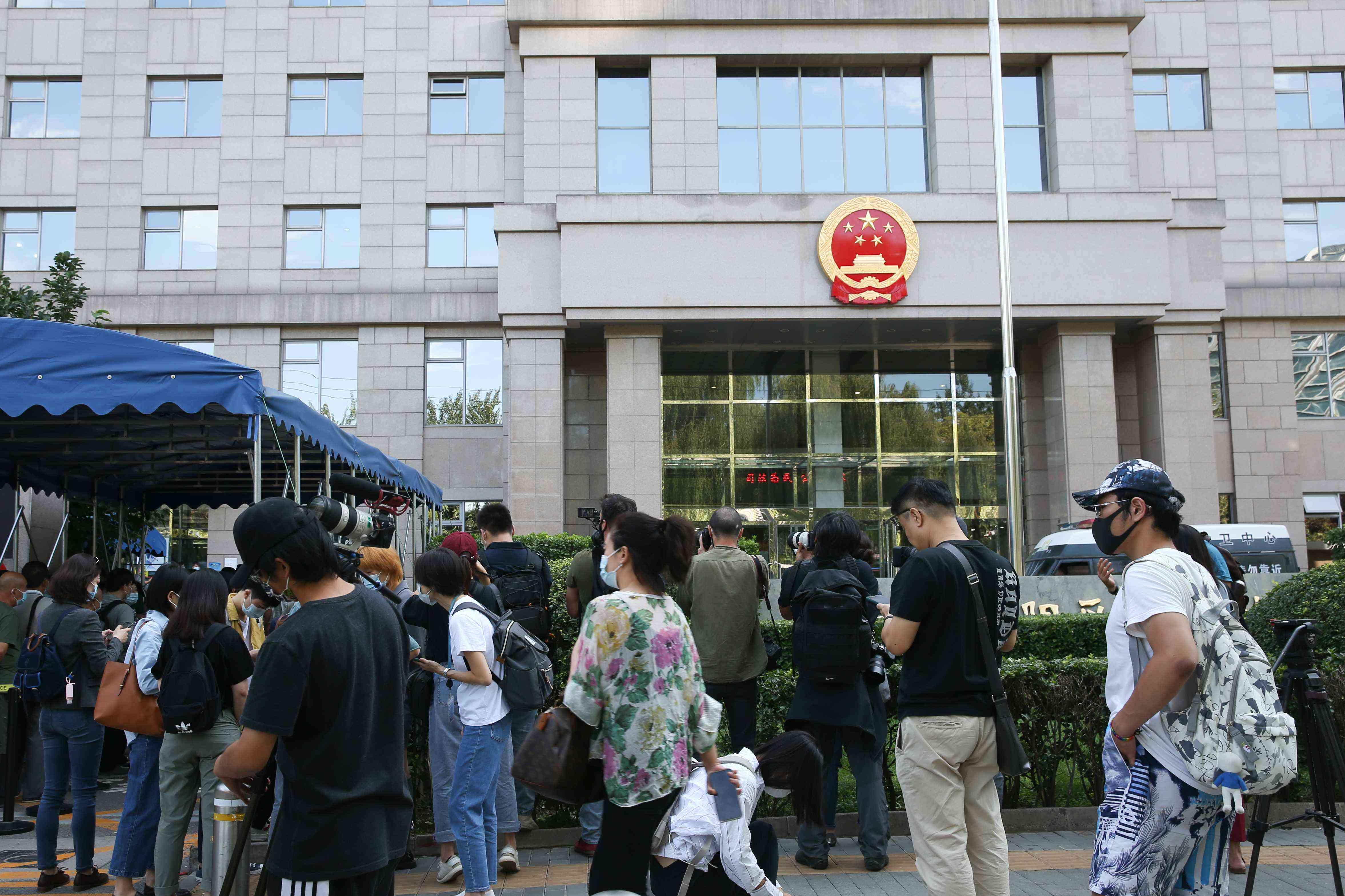 2021年9月17日,北京市朝陽(yáng)區(qū)人民法院門口,媒體及關(guān)注案件的人士在等候庭審結(jié)束。(中國(guó)日?qǐng)?bào)記者 武曉慧 攝)