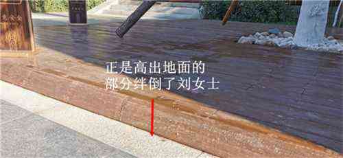 李女士稱(chēng),自己絆倒后,她丈夫蹲在地上仔細(xì)查找,看看到底是什么絆倒了她,原來(lái),她看到了咖啡色所謂的“地磚”不是地磚,好像是木頭板兒搭的一個(gè)四方形木盒,四方形木盒包著一棵樹(shù),這個(gè)木盒高出地面大概有三厘米,正是高出地面的部分絆倒了自己。李女士解釋稱(chēng),絆倒自己的時(shí)候是下午5時(shí)40分許,這個(gè)時(shí)候天色有點(diǎn)漸暗,加上小院里燈光也不是很亮,人站著走路根本看不到凸起部分,以為就是故意鋪的咖啡色地磚呢,只有蹲在地上才能看清高出地面的是木板物。李女士說(shuō),多虧自己丈夫跟著自己距離遠(yuǎn),不然,自己被絆倒,搞不好自己丈夫也會(huì)被絆倒。