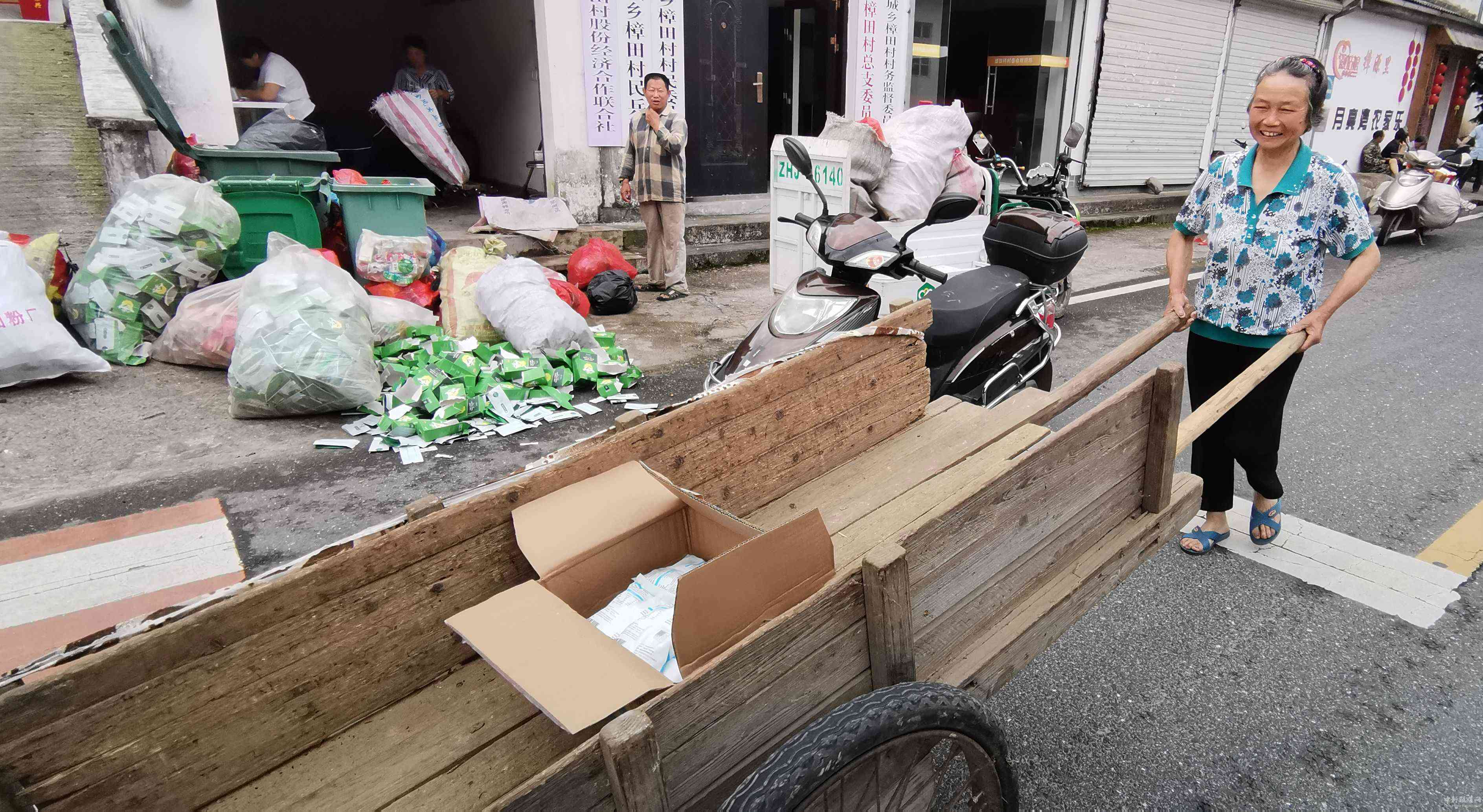 “這次多,一次運不了要做兩次運呢。”村民方新年說。村民方仙紅當天用板車拖來的垃圾全部兌換成了食鹽,一共16袋。超市負責人王芳介紹,去年該超市垃圾兌換的商品總價值23000余元。