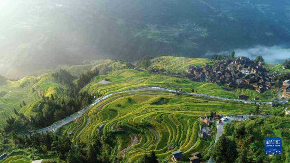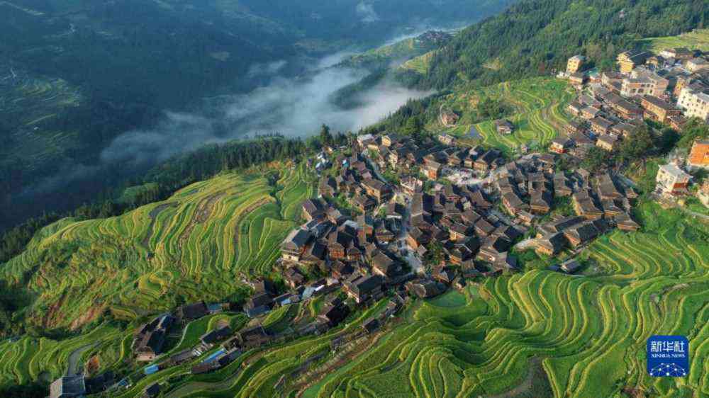 9月11日在從江縣加榜鄉(xiāng)加車村拍攝的梯田和村莊(無人機(jī)照片)。