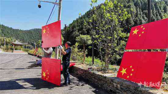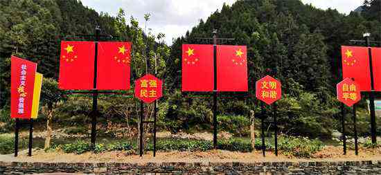 近日,安徽省休寧縣鶴城鄉(xiāng)政府駐地S222省道沿線兩側(cè)主街道上整齊地懸掛了一面面鮮艷的五星紅旗,讓當(dāng)?shù)厝罕娫谙矐c祥和的氣氛中,迎來第72個(gè)國慶佳節(jié)。(盛紅兵)