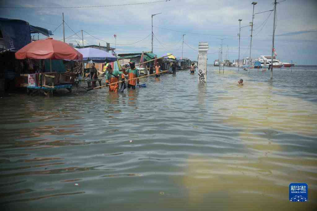 11月9日,印度尼西亞雅加達(dá)海邊的居民區(qū)被積水淹沒(méi)。新華社發(fā)(祖卡南攝)