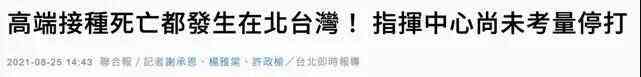 今天上午,桃園市一44歲溫姓男子在接種疫苗后死亡。據(jù)臺(tái)媒報(bào)道,該男子23日第一批接種“高端”疫苗,打完疫苗返家休息。今天上午在工作中突然休克昏倒,急救人員趕到時(shí)已停止心跳。此后送醫(yī),院方宣布該男子到院前已經(jīng)死亡。