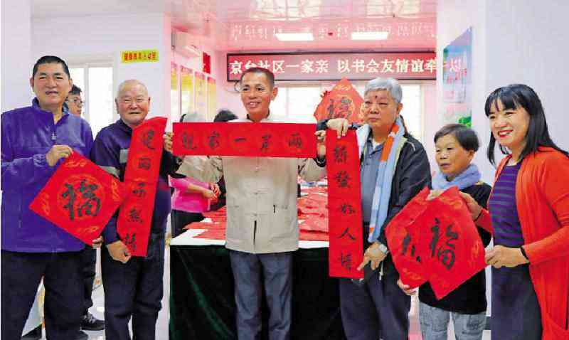 圖:今年6月,臺(tái)灣高雄市六龜區(qū)新發(fā)里里長(zhǎng)劉俊麟(右四)一行到訪北京平谷區(qū),與當(dāng)?shù)厣鐓^(qū)民眾共同寫下“兩岸一家親”。\資料圖片