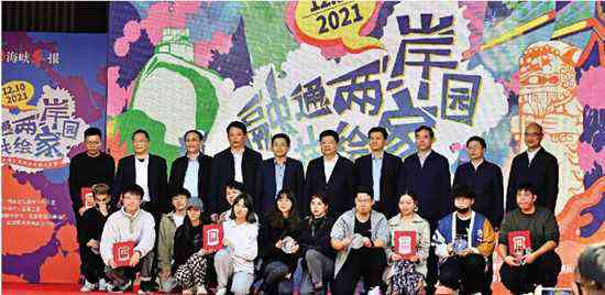 圖:12月10日,二〇二一海峽論壇第三屆創(chuàng)意涂鴉大獎(jiǎng)賽落幕。大賽以“融通兩岸 共繪家園”為主題,評(píng)選出五幅作品在街區(qū)涂鴉上墻,成為一道亮麗風(fēng)景。圖為在頒獎(jiǎng)儀式上,嘉賓與獲獎(jiǎng)?wù)吆嫌啊?新華社