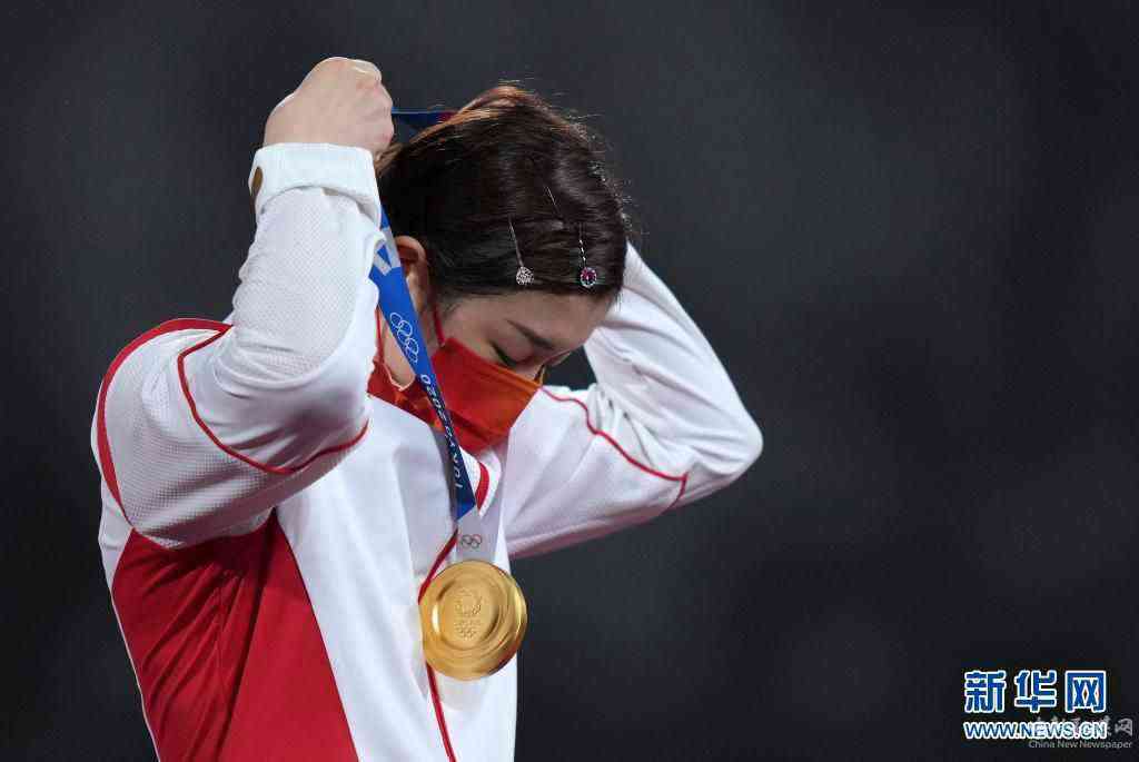 7月29日,陳夢(mèng)在頒獎(jiǎng)典禮上為自己佩戴金牌。