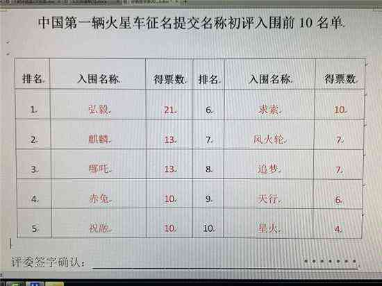 本次網(wǎng)絡(luò)投票結(jié)束后,還將由評委進(jìn)行終審選出前3名,并參考公眾投票得分的前3名,最終選定3個(gè)名字并按程序報(bào)批,最后確定中國第一輛火星車名稱入選方案,并于中國首次火星探測任務(wù)“天問一號(hào)”著陸火星前擇機(jī)公布。
