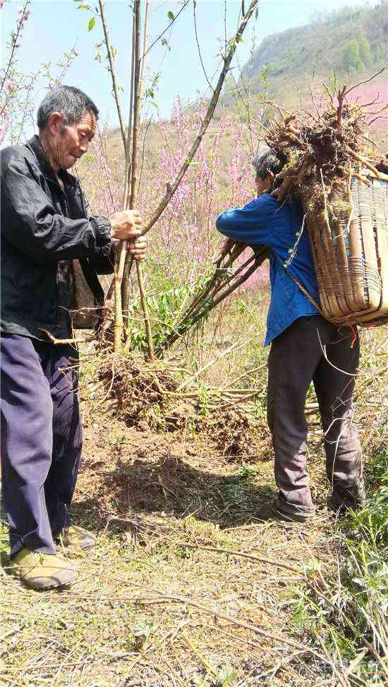 將152株兩公分的桃樹從田里扛上公路邊打包,再去大樹子挖來4株五公分的香樟樹,搬上前來運輸?shù)呢涇?,給苗根澆上兩桶烏龍谷山泉水,下午四點十五分,烏龍谷雪桃樹開始沖出貴州,向云南進發(fā)……