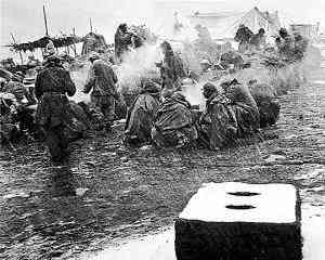 △進(jìn)入拉薩的十八軍官兵風(fēng)餐露宿。