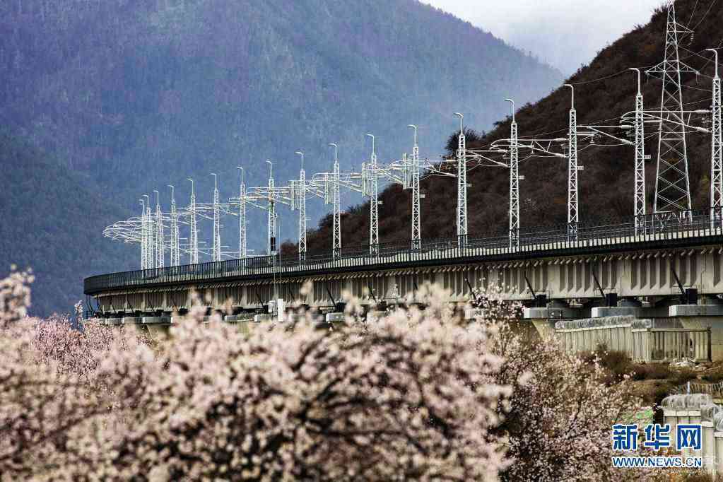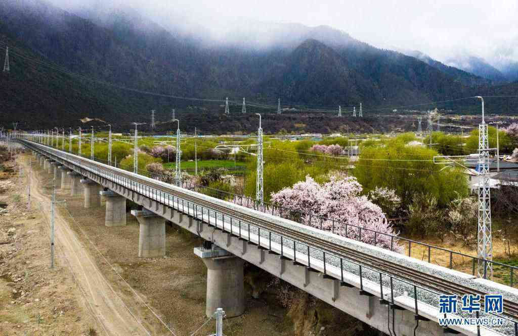 4月1日在西藏自治區(qū)林芝市拍攝的拉林鐵路。新華社發(fā)(焦宏濤 攝)