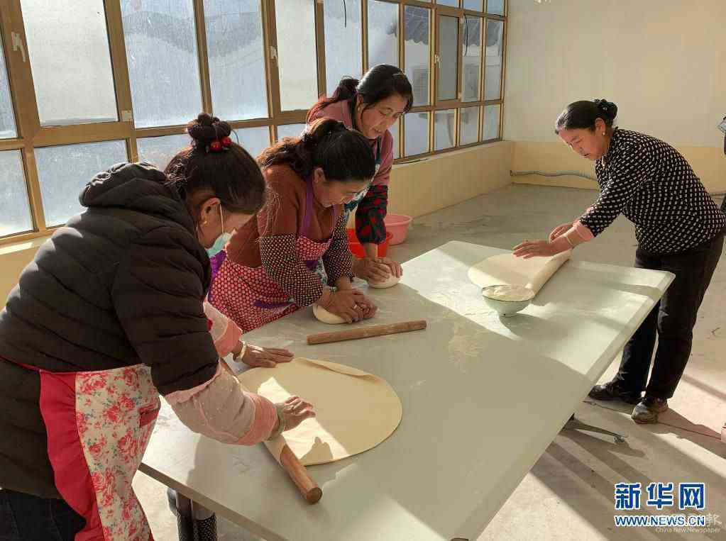 紅柳村村民在一起搟面,為“幸福家宴”準備主食(資料照片)。
