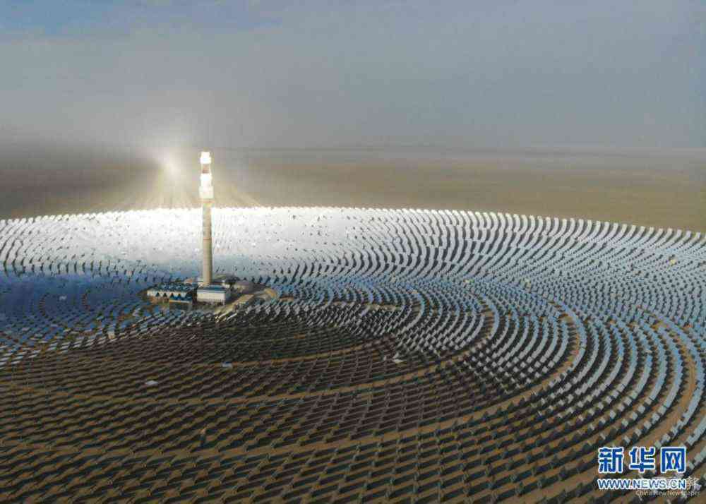 在甘肅省敦煌市向西約20公里處,被稱為“超級(jí)鏡子發(fā)電站”的首航高科敦煌100兆瓦熔鹽塔式光熱電站在戈壁灘上閃耀(2021年2月24日攝,無(wú)人機(jī)照片)。