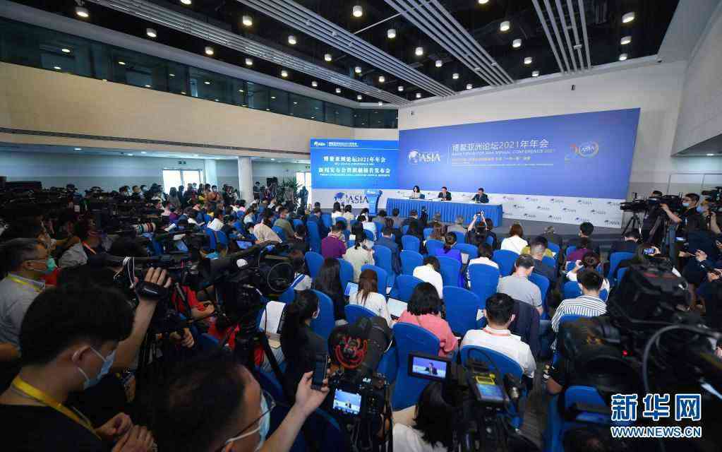 這是博鰲亞洲論壇2021年年會新聞發(fā)布會現(xiàn)場(4月18日攝)