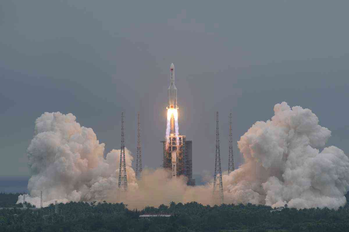 4月29日,在文昌航天發(fā)射場,搭載著中國空間站天和核心艙的長征五號B遙二運載火箭點火升空。宿東 攝