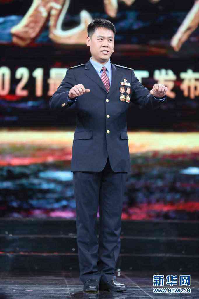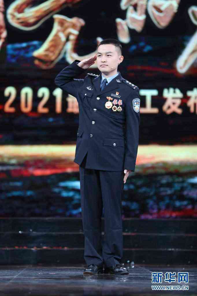 湖北省武漢市公安局蔡甸區(qū)分局大集街派出所副所長(zhǎng)燕占飛在北京舉行的2021年“最美職工”發(fā)布儀式現(xiàn)場(chǎng)(4月22日攝)。新華社發(fā)(吳凡 攝)