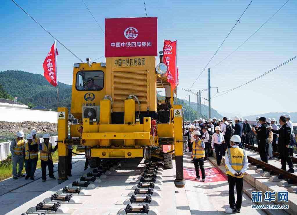 這是5月8日在張吉懷鐵路施工現(xiàn)場(chǎng)拍攝的長(zhǎng)鋼軌智能推送車。新華社發(fā)