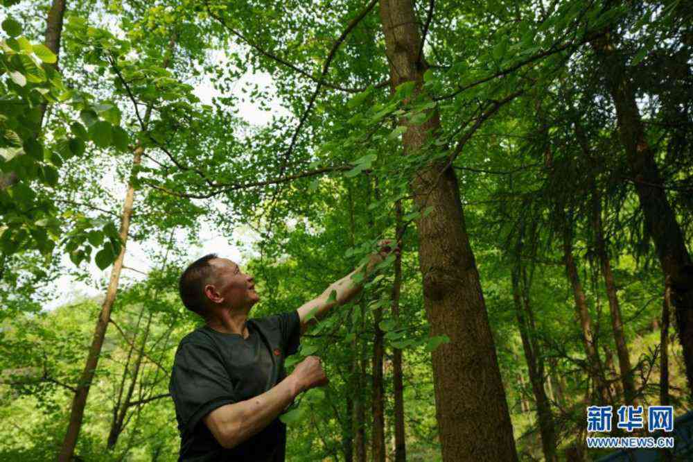 5月4日,林興聰在自家林地里看著茁壯成長的銀杏樹。 新華社記者 江宏景 攝