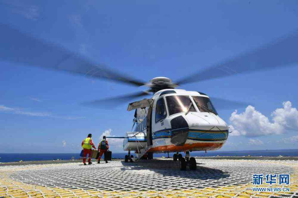 在位于海南島東南陵水海域的“深海一號”能源站上拍攝的直升機甲板(5月12日攝)。