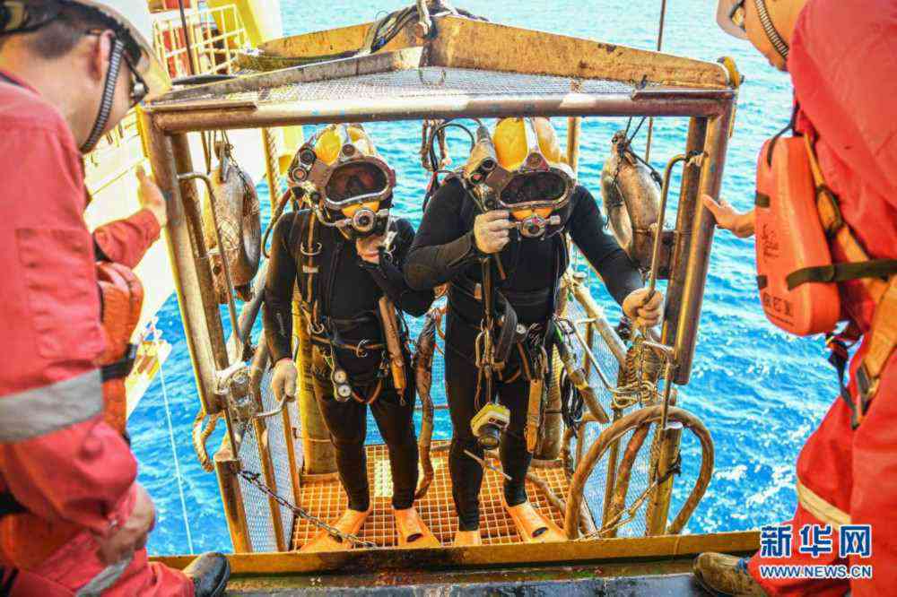 在位于海南島東南陵水海域的“深海一號”能源站上,工作人員準備下潛進行潛水作業(yè)(5月12日攝)。