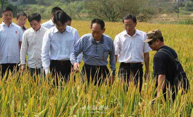 2014年10月10日,湖南溆浦縣橫板橋鄉(xiāng)紅星村超級(jí)稻基地,袁隆平院士視察超級(jí)稻情況。