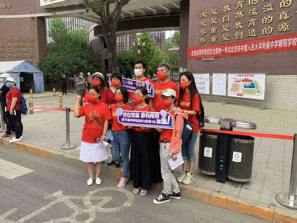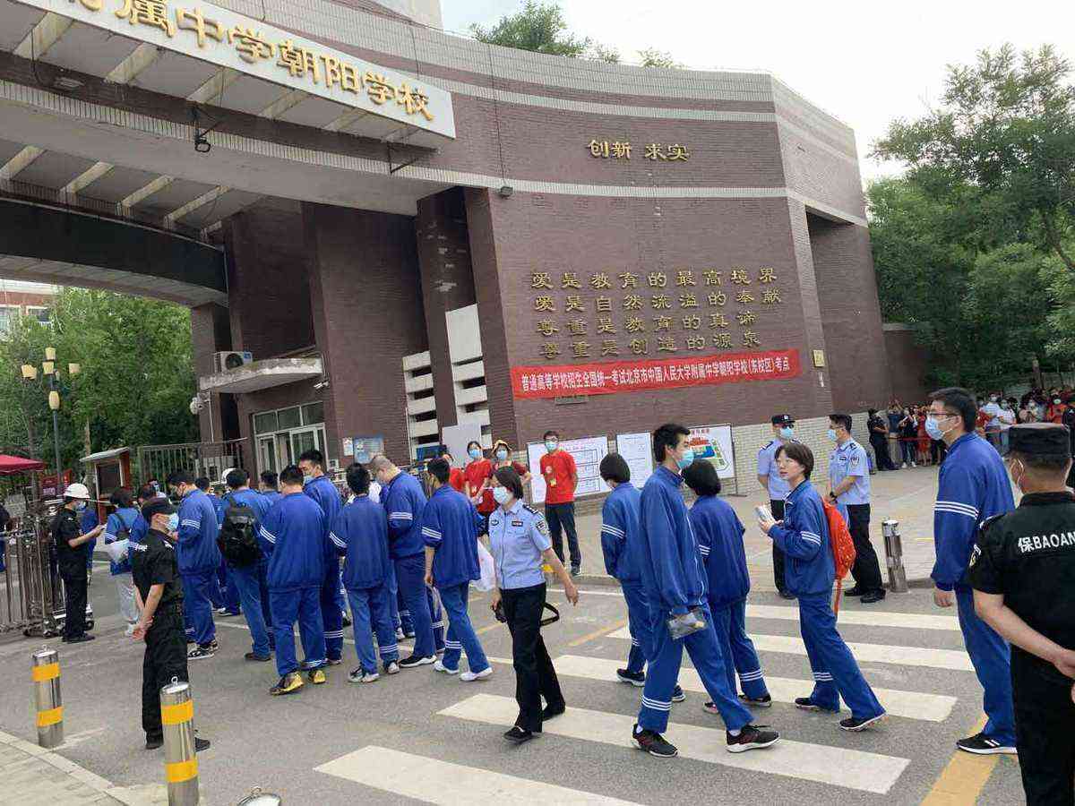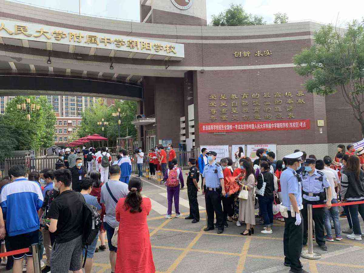 在中國人民大學(xué)附屬中學(xué)朝陽學(xué)校外,考生們陸續(xù)進(jìn)入考場(chǎng)。
