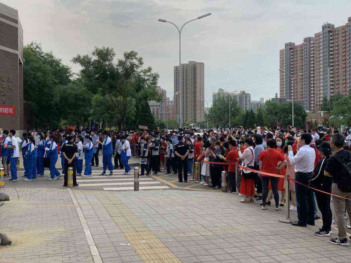 很多家長(zhǎng)老師親友一大早就來到考點(diǎn)外送考,開考后依然站在考場(chǎng)外遲遲不愿離去。