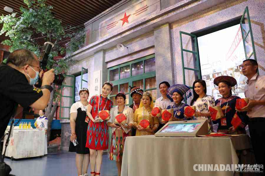 6月30日,全國(guó)少數(shù)民族參觀團(tuán)在中國(guó)共產(chǎn)黨歷史展覽館拍照留念。(中國(guó)日?qǐng)?bào)記者 王壯飛 攝)