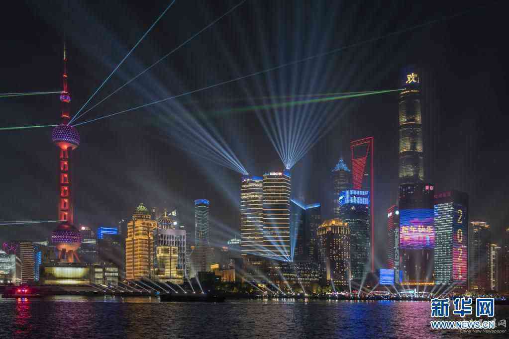 這是在上海外灘拍攝的陸家嘴光影秀(2021年1月2日攝)。新華社記者 王翔 攝